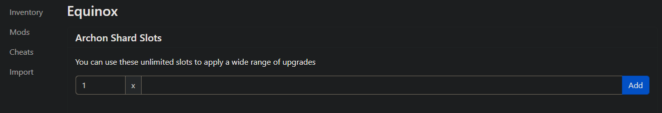 Thought it might fit as a WebUI feature, since we have something slightly similar with Archon Shards for Warframes there too.