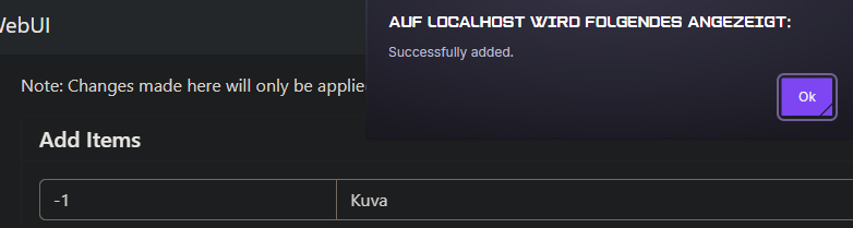WebUI: Tell user that item count was "Successfully reduced." (not added) when using a negative number in "Add Items" #1248