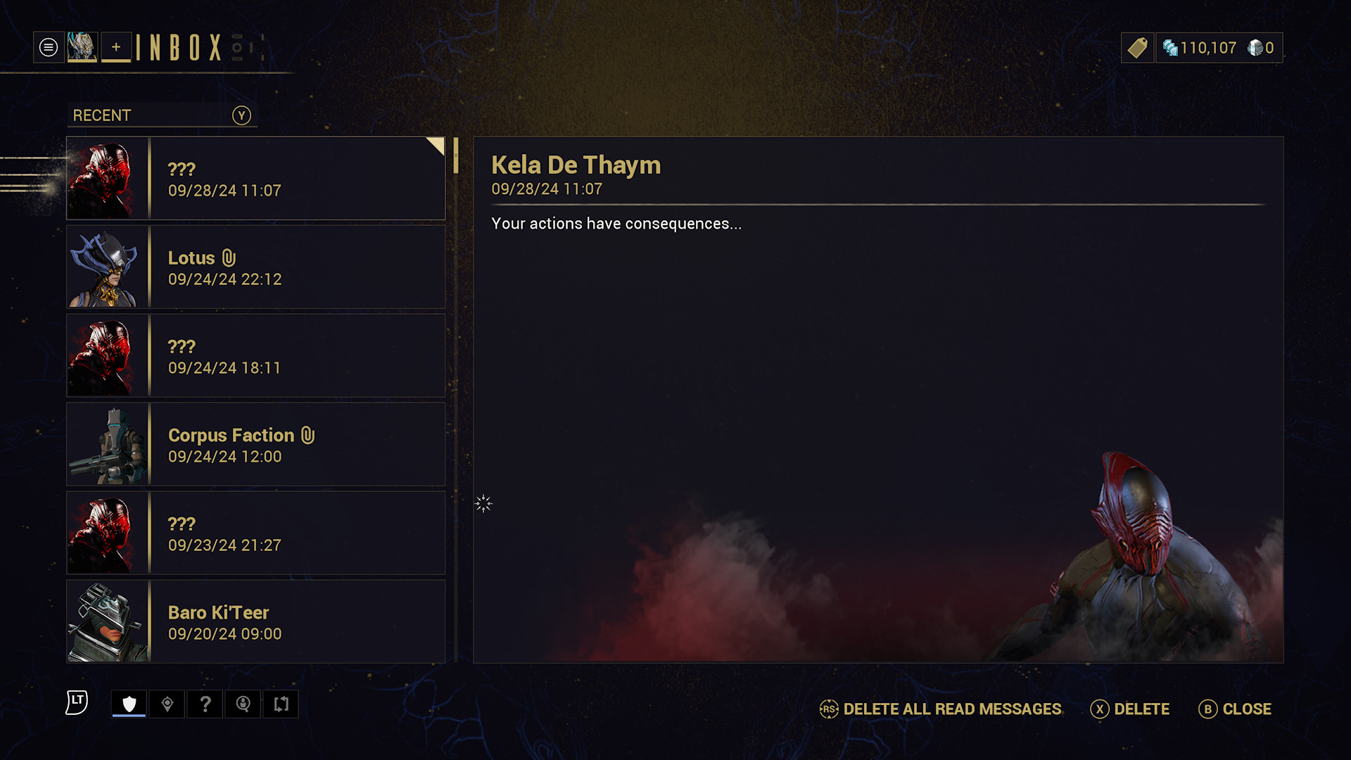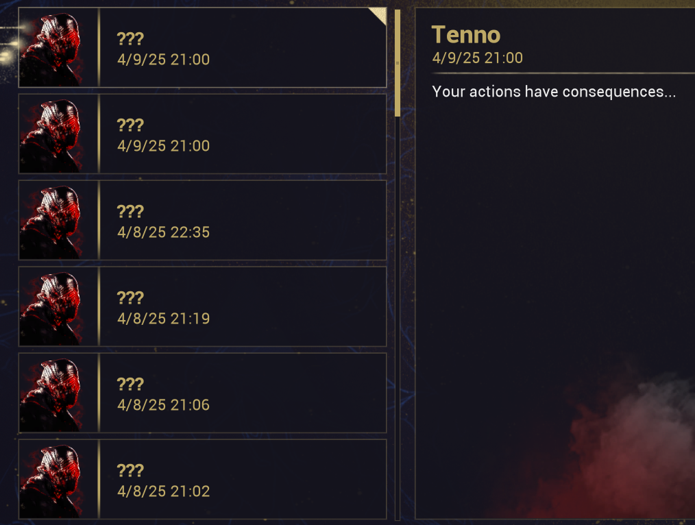 Currently in the emulator, the message's title for every Stalker message reads as "Tenno":