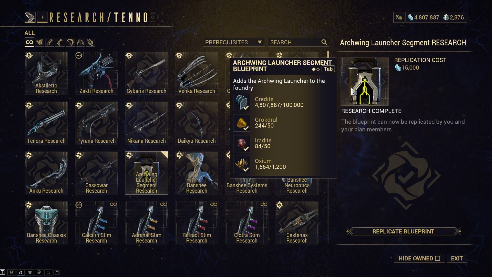 Archwing Launcher Segment Research missing from Tenno Lab #1582