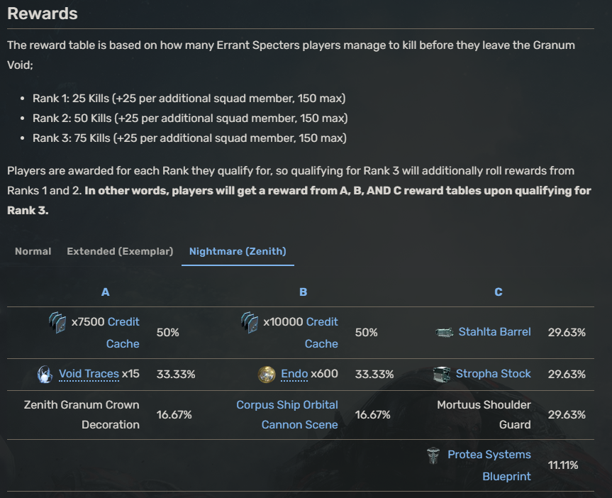 I did a Steel Path Survival, obtained a Zenith Granum Crown in mission, used it and finished it (75+ kills) but haven't gotten any of the mentioned potential rewards.