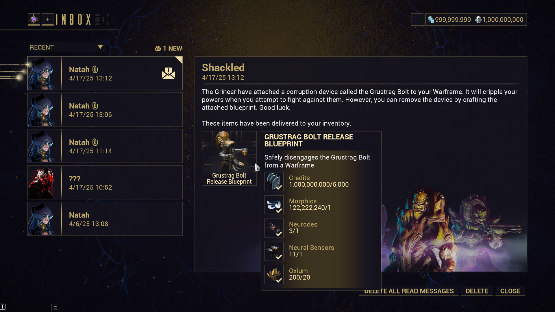 The mission isn't even Grineer related, and on Live back in the day the Hallowed Flame missions wouldn't give that. Definitely a bug.