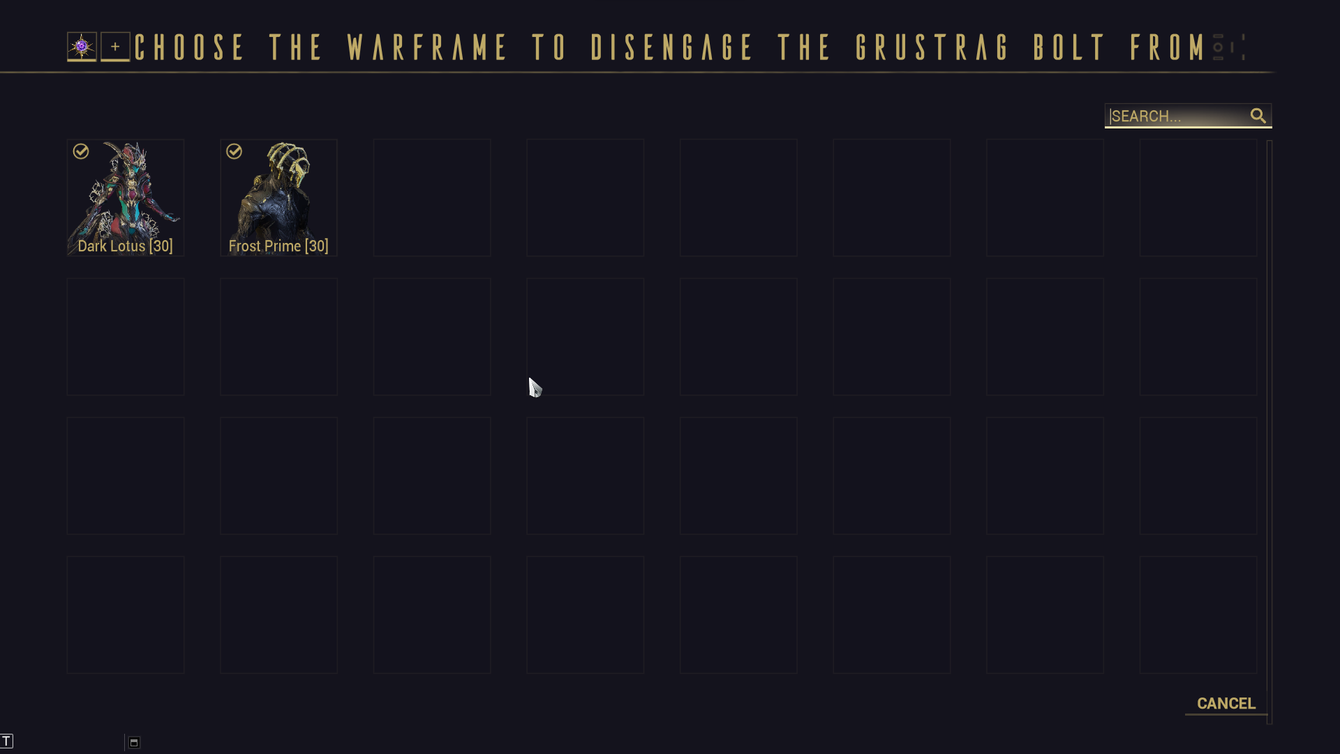 Grustrag Bolt temporarily shows second Warframe still, that has already been free from it + can be used twice on same Warframe strangely #1695