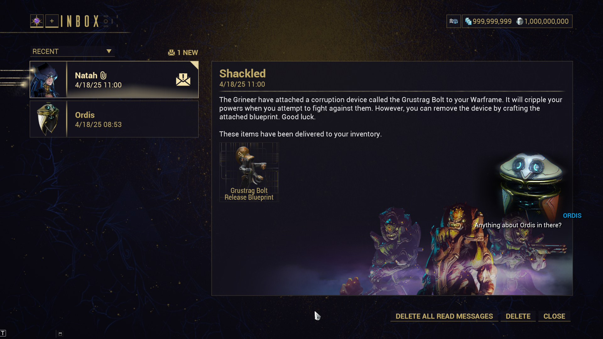 Hmm, yeah, it does seem that you are not able to get another set of items shackled while you already have some existing gear shackled, so based on what the client is saying, the server is giving your new warframe the G3 bolt. I guess it should just do nothing when you already have some items captured by Zanuka?