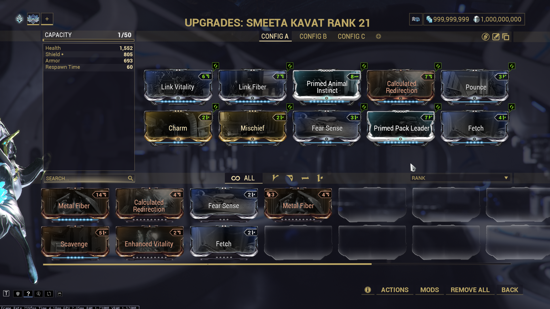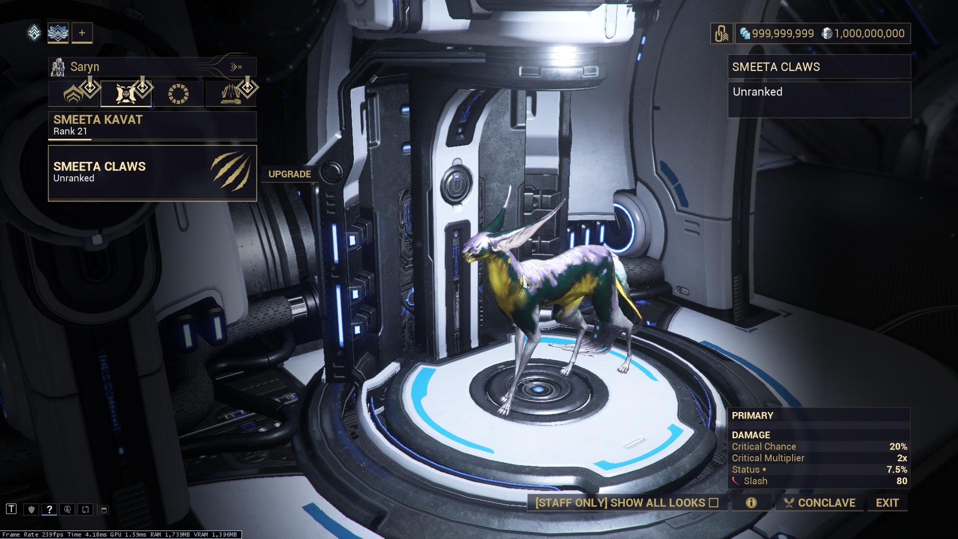 When giving and Maxing a Smeeta Kavat he went to LVL 21 instead of 30. And the claws are unranked!