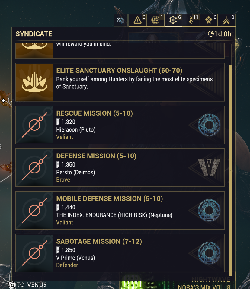 Syndicate Missions using unintended nodes (e.g. The Index) and becoming unplayable + not being removed properly during new rotationto Syndicate Missions using unintended nodes (e.g. The Index) and becoming unplayable + not being removed immediately during new rotationSeems like Persto is also not supposed to be a syndicate mission?