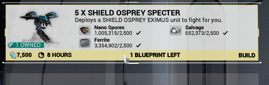 Shield Osprey Specter Blueprint crafting only giving 1x Specter, instead of expected 5x #1915