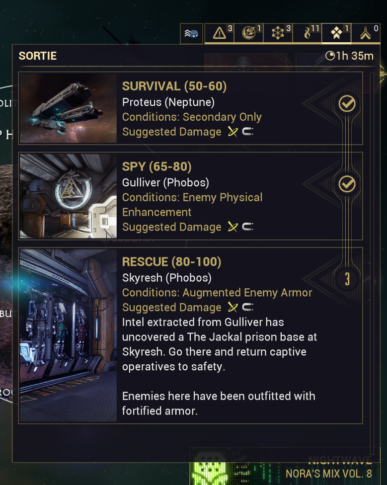 In todays Sortie I noticed that Mission 3 uses Augmented Enemy Armor on Corpus... which I would not recall seeing on Live before, when I was still playing. So I looked into past Sortie data, with 179 examples Sorties with the condition and none were ever for Corpus Faction. Augmented Enemy Armor condition is intended for Grineer, Infestation and Orokin Faction, but not for Corpus. Aside of the fact that the condition doesn't affect them at all, in the Sortie.