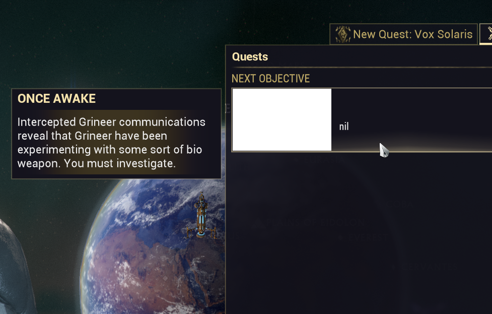 I deleted a previous account and created a new one with the same credentials. Quests tab shows Once Awake in a broken state.