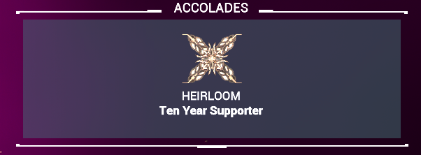 The honorary title "10th Anniversary Heirloom" fails to appear properly in-game after being imported through the cheat web admin panel.to Import doesn't handle "accolades"Unable to reproduce.