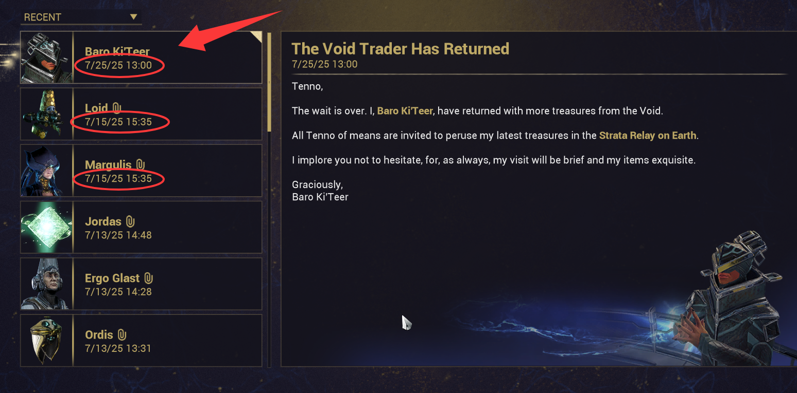Baro Ki'teer's mail notifications have an incorrect schedule. #2495