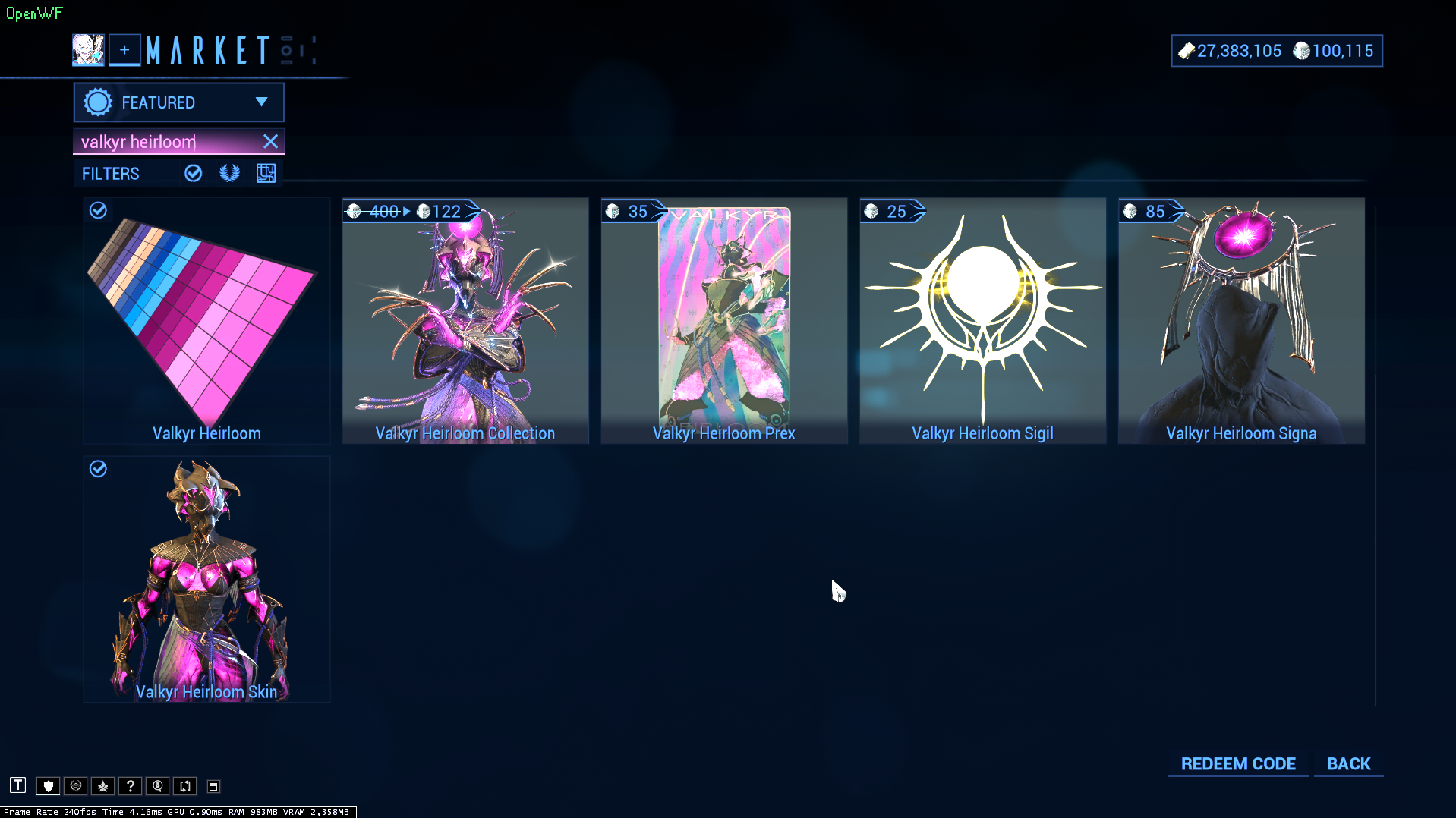 Valkyr Heirloom unavailable in game store. #2546