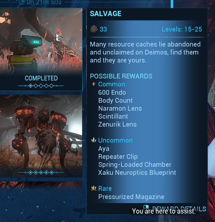 In Deimos open world the Mother Tokens rewarded for missons seem to be bugged. Specifically, refer to the two images attached. The bounty lists 33 tokens as a reward. The final reward only grants 3 tokens - the bonuses acquired for finishing the secondary tasks during bounty stages. The main 33 token reward is never granted.