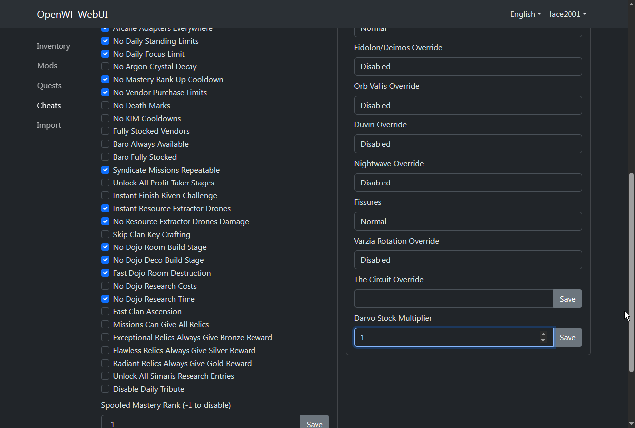 Cambion Driftor inNecralisk?Got it from Necralisk, yeah. Maybe one of the cheat checkmarks breaks the rewards somehow?