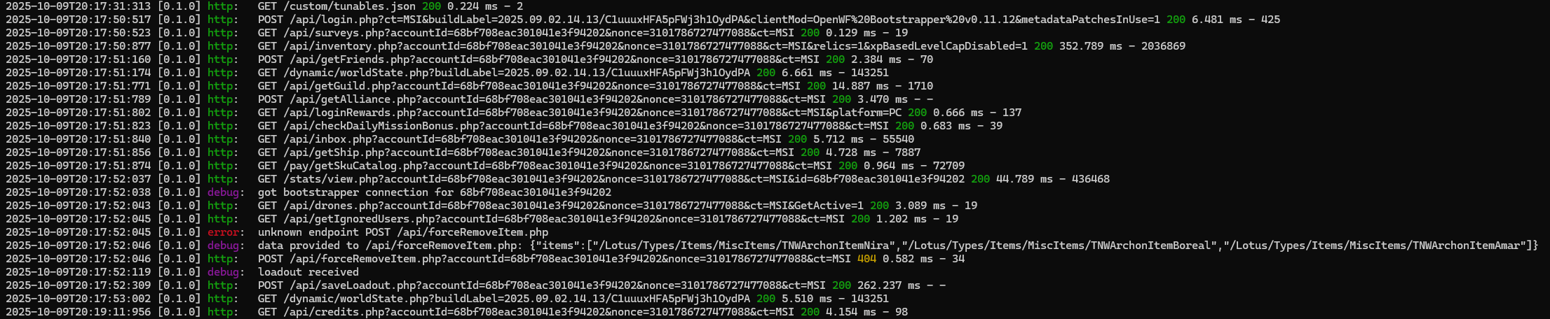server log says something about "forceRemoveItem.php" and "TNWArchonItem"