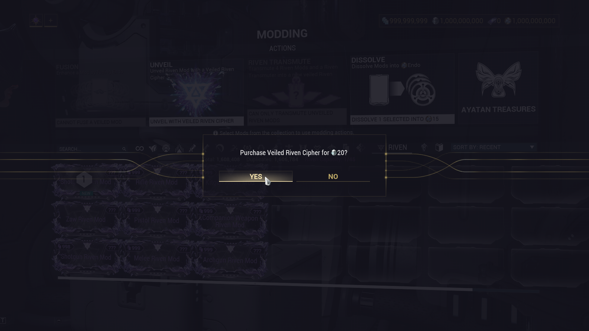 Not sure if related, but purchasing Veiled Riven Cipher here doesn't seem to be doing anything.