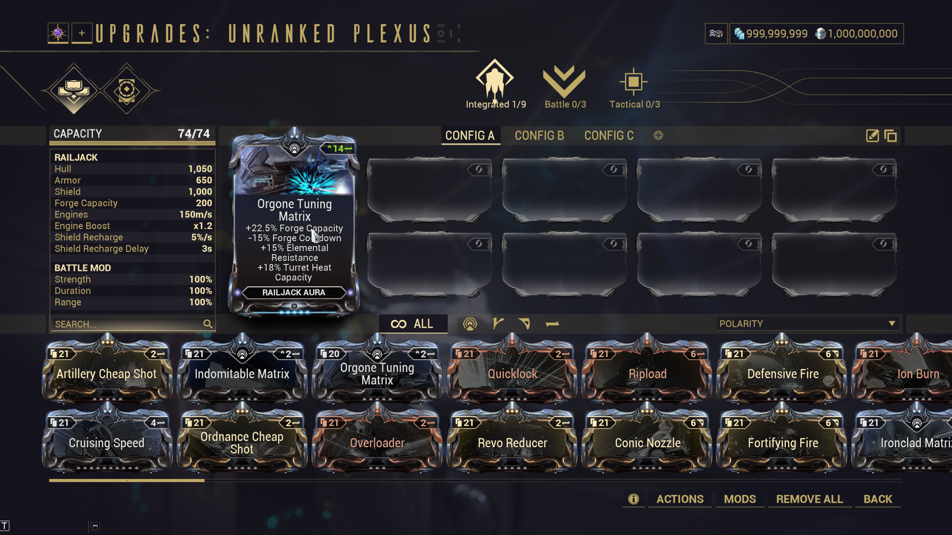 15 is the right number. Universal polarity on the aura slot can be used for increasing mod capacity even further.