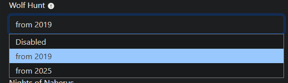 That would activate Wolf 2019 as the default one (line 2366 & 2367), if you activate the event the first time in WebUI (while also not having a value present in config.json in advance yet). I intentionally swapped the values to keep the identical behavior (2025 being the default one like before), while also fixing the dropdown menu visually.